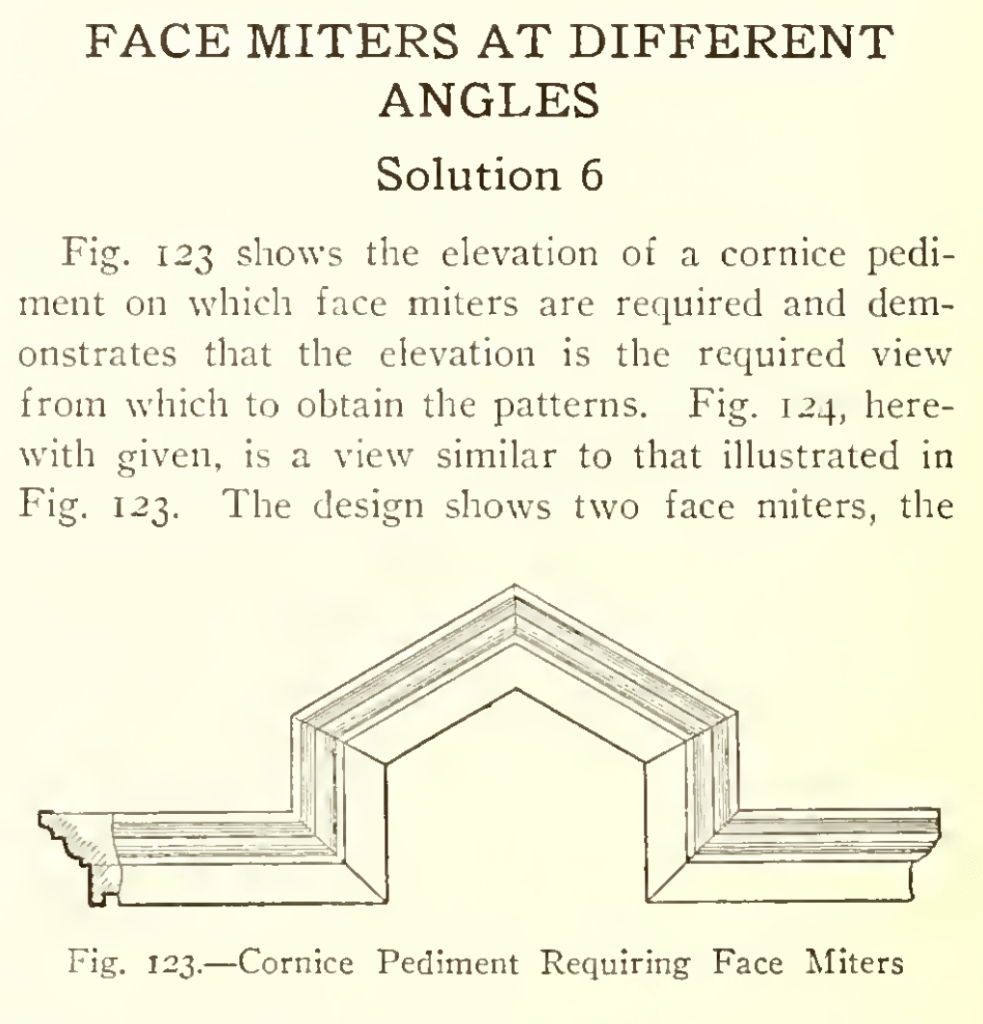 This lesson is from section 4: PATTERNS FOR SHEET METAL CORNICES, RETURN, FACE, BEVEL AND BUTT MITERS, PANELS, MOLDINGS, PEDIMENTS, DORMER AND BAY WIN
