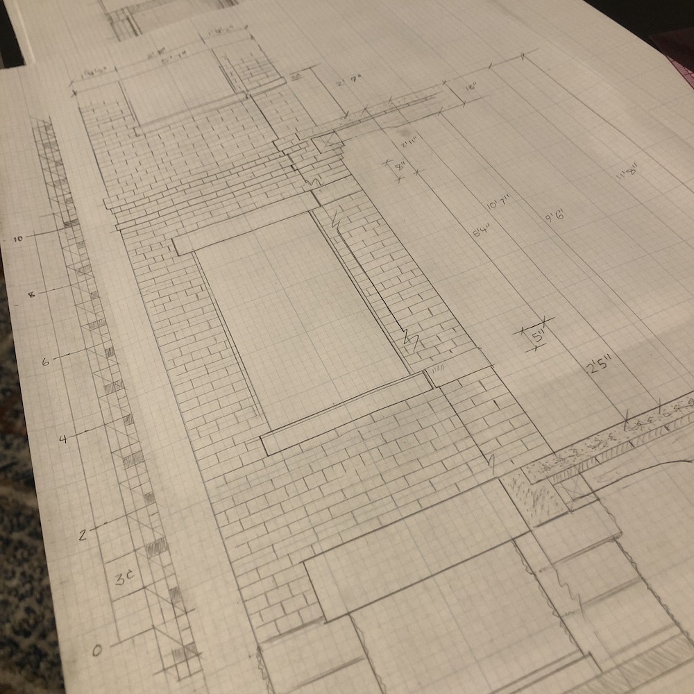 Letโs reiterate what this jumbled drawing provesโฆ. In order to lay out the curve for a groin vault, you only needed to know the surface development of its inverse, the dome vault in square, and produce that net in the scribing floor. All cuts derived from tangents of that net line. This has been unfolded but I could have done it all within the original crossing section. There is no radius โoff the sheetโ required to produce the curve.โ