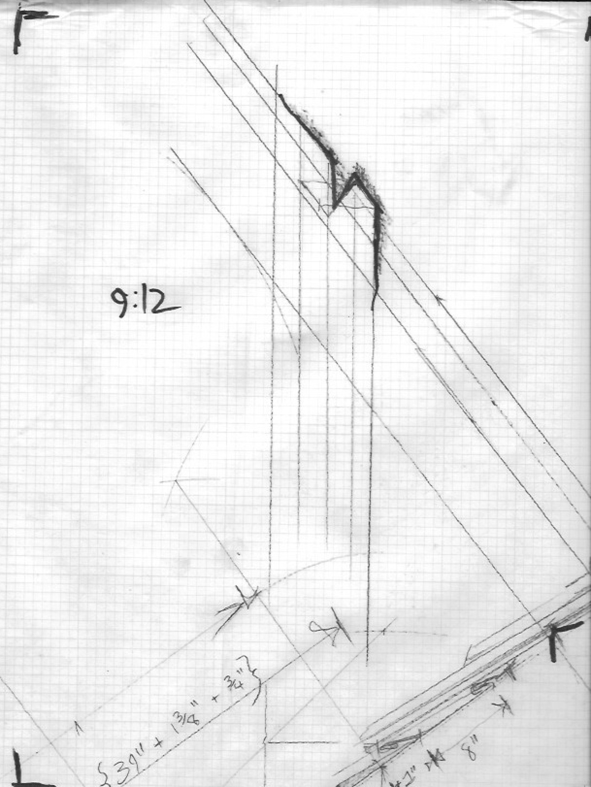 Over my time in the shelter from November, thru the beginning of February, I worked on these hip patters. These are useful for creating folded hips on a standing seam copper roof, although any light gauge material that will not rust can be used. Eventually I will get them all scanned and available on an index page. One-off patterns are always available. Contact for metal roofing design and pattern work!