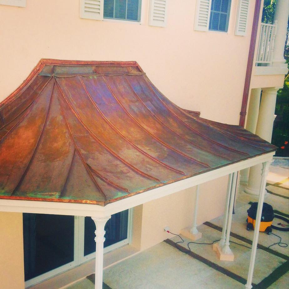One of my first commissions when I started touring in 2015: This medieval-inspired copper standing seam in Lyford Cay. This material is 22oz annealed and was formulated specifically for the extreme conditions in the caribbean.