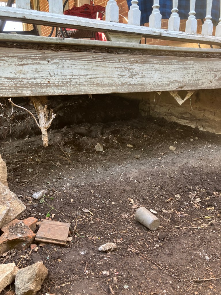 Next task: dig out completely under the porch and tuck point the wet foundation with hot mixed lime mortar. It will be sound for another 7 generations after that work.