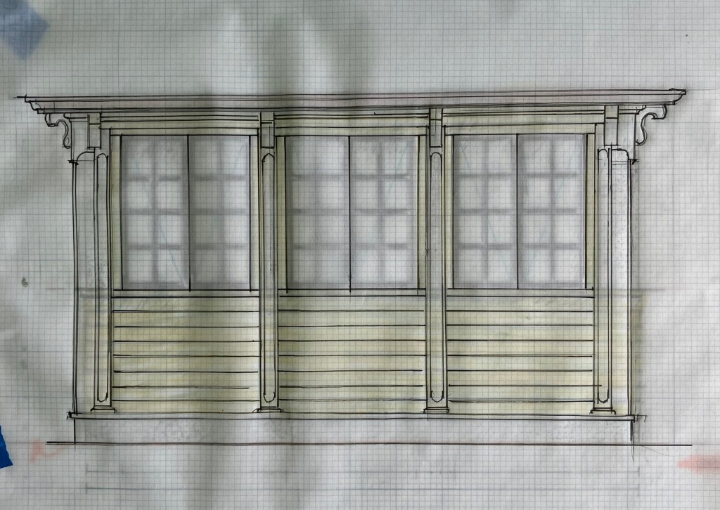My first idea was to punctuate the addition and date it in the arts and crafts era. The theory being: an addition should read as an addition and not attempt to “fake” consistency with the rest of the building: